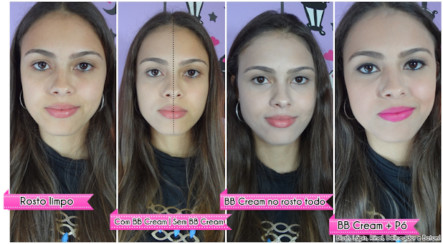 Na segunda foto estou com metade do rosto com o BB Cream e a outra metade sem nada, pra mostrar a diferença de cor da hora da aplicação, nessa mesma foto já é possível ver como a cobertura dele apesar de leve cobre MUITO as imperfeições.